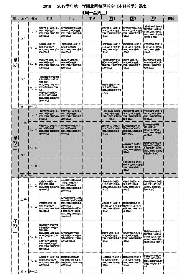 永利集团北固校区2018 - 2019学年第一学期本科教学课表