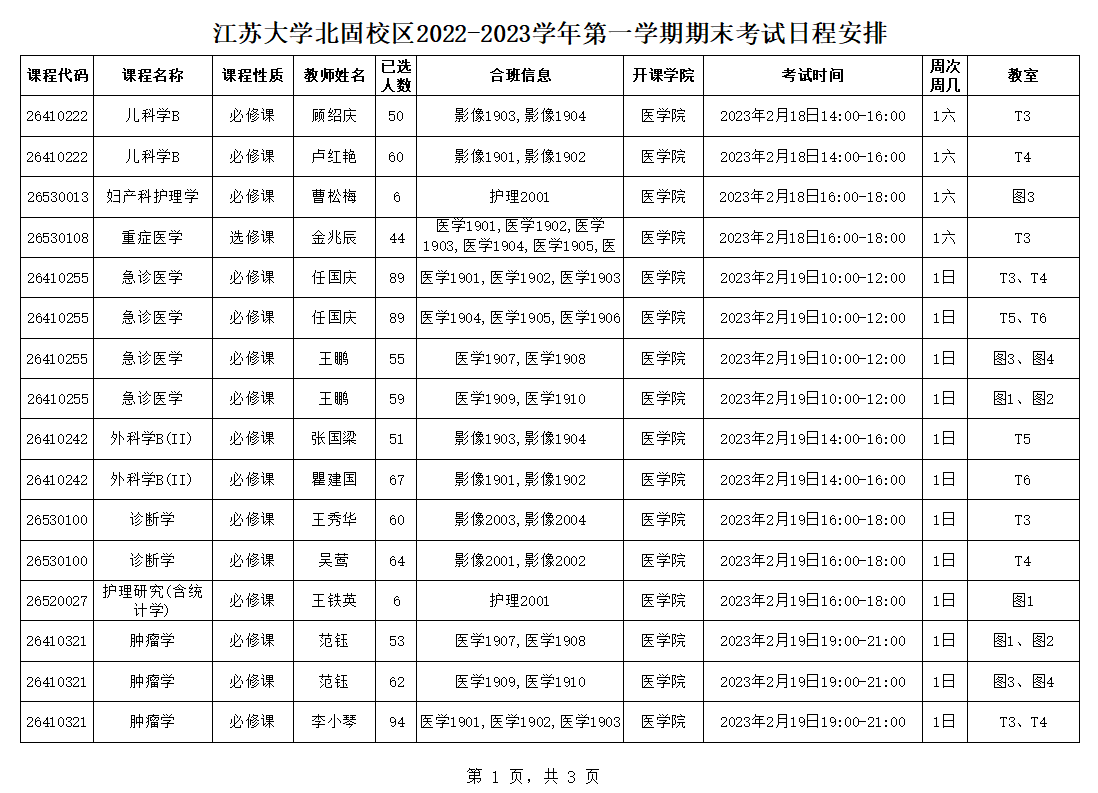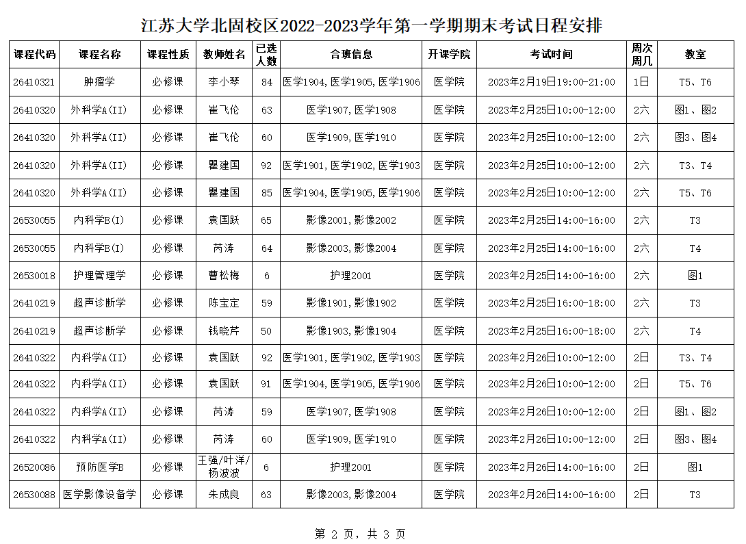 永利集团北固校区2022-2023学年第一学期期末考试日程安排(2.11)