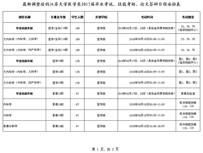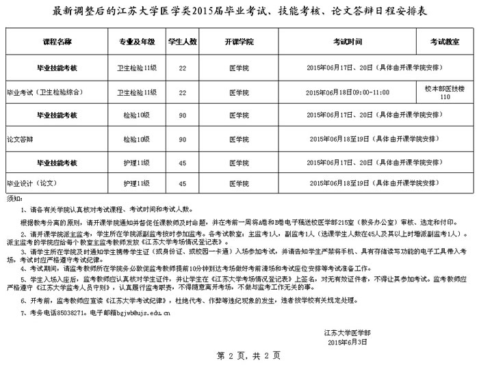 最新调整后的永利集团医学类2015届毕业考试、技能考核、论文答辩日程安排表
