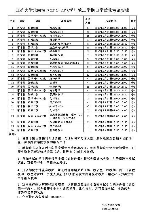 永利集团北固校区2015-2016学年第二学期自学重修考试安排