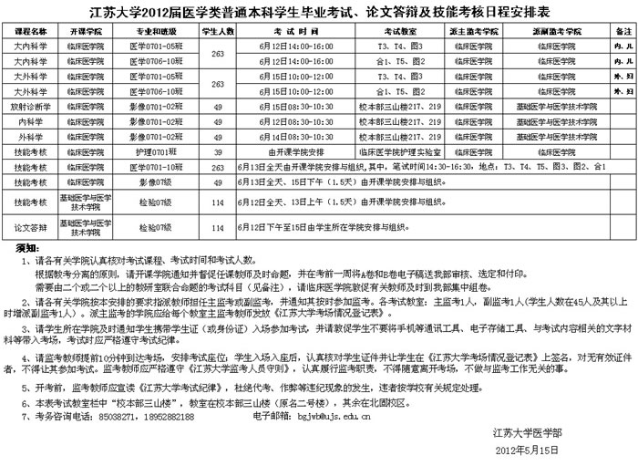 永利集团2012届医学类普通本科学生毕业考试、论文答辩、技能考核日程安排表