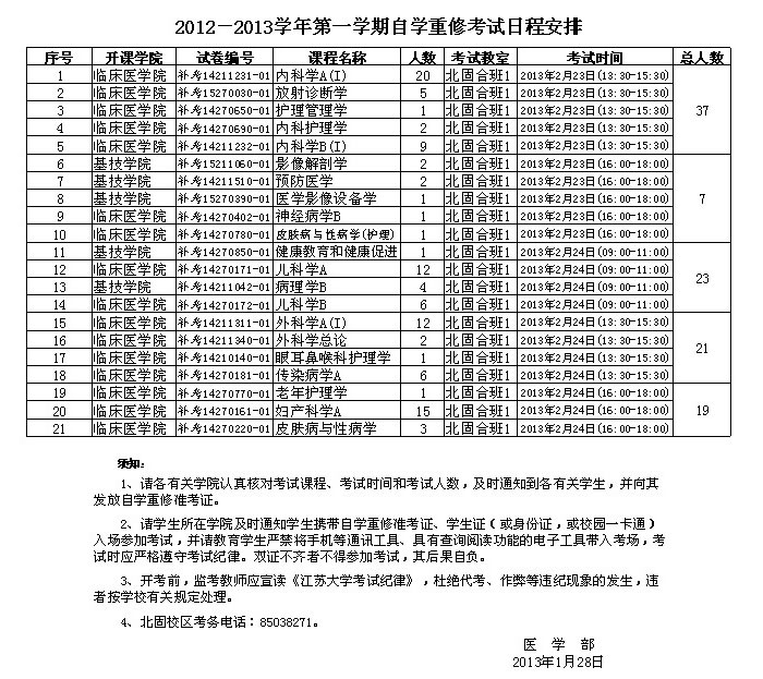 北固校区2012-2013学年第一学期自学重修考试日程安排20130128.xls
