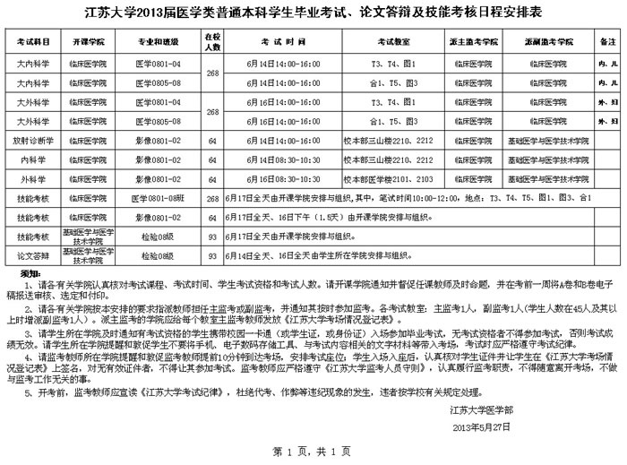 因端午节放假,医学类毕业实习学生返校时间有所调整。为此,医学类毕业考试、技能考核、论文答辩的时间安排作了相应变更。现公布如下: