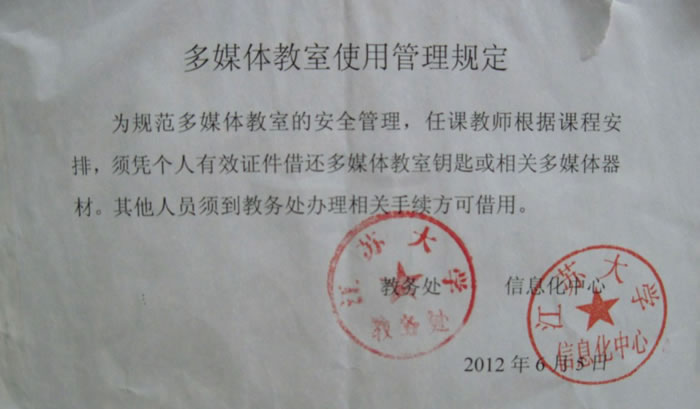 教务处、信息化中心关于《多媒体教室使用管理规定》