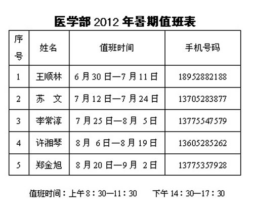 医学部2012年暑期值班表