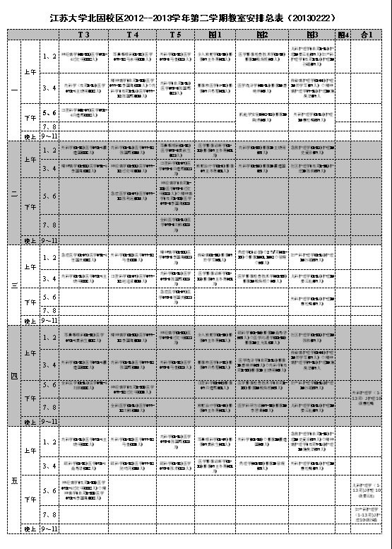 北固校区2012-2013学年第二学期课表