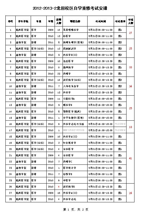 北固校区2012-12013-2自学重修考试安排