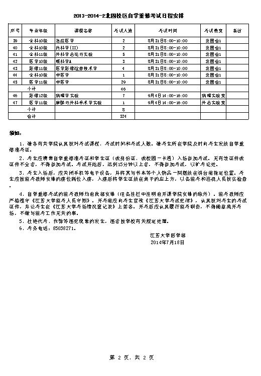 2013-2014-2北固校区自学重修考试安排