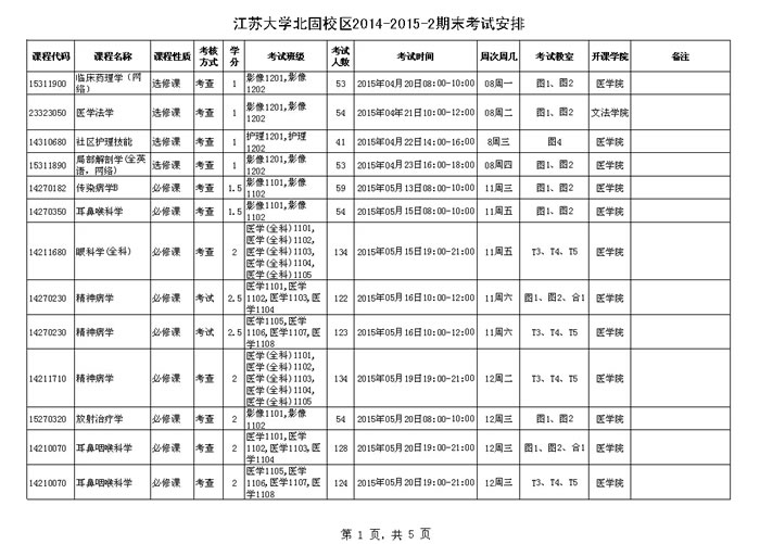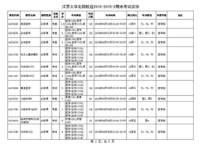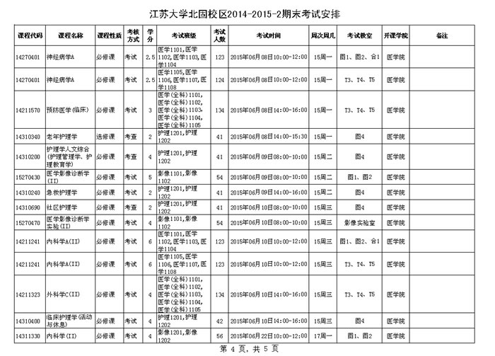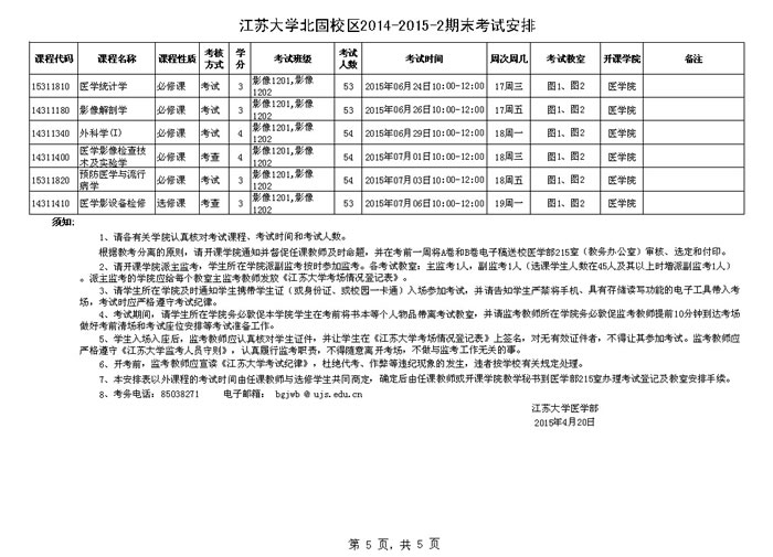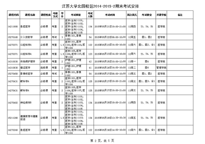 永利集团北固校区2014-2015学年第二学期期末考试安排