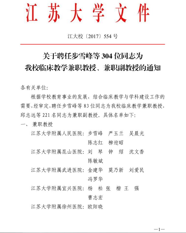 关于聘任步雪峰等304位同志为我校临床教学兼职教授、兼职副教授的通知