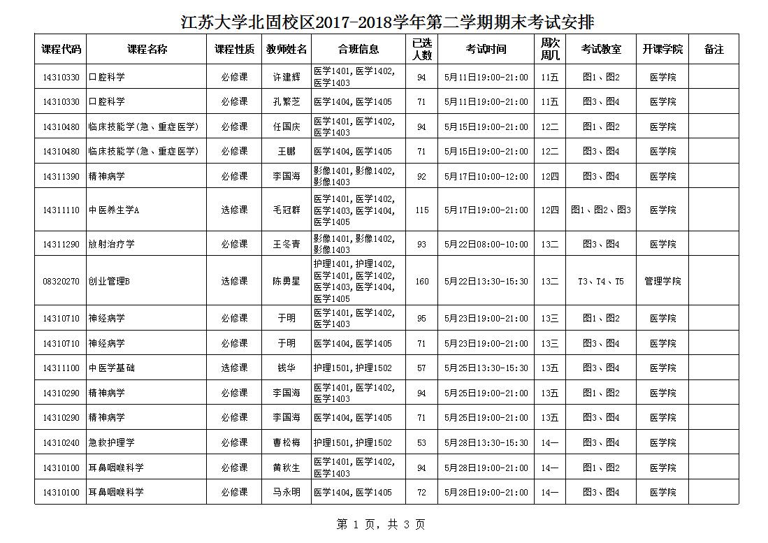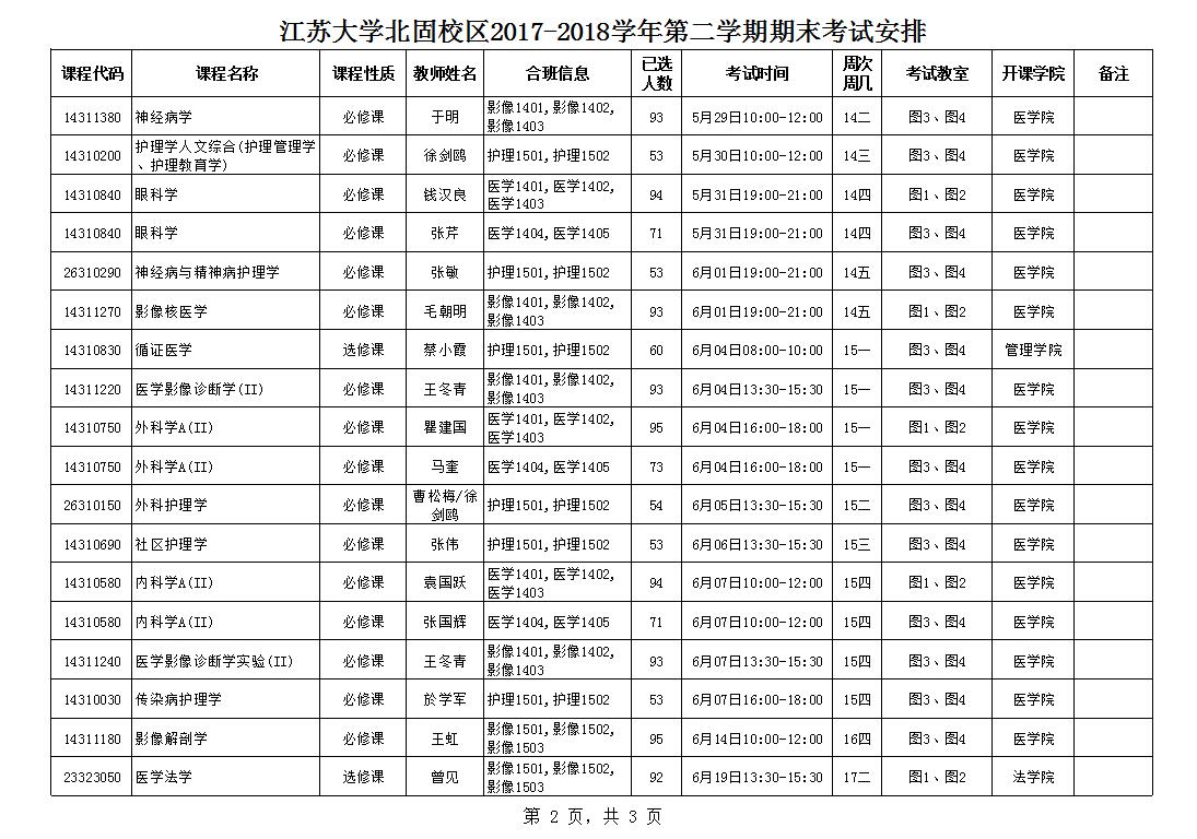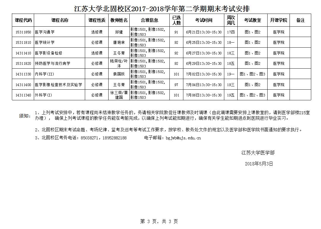 永利集团北固校区2017-2018学年第二学期期末考试安排