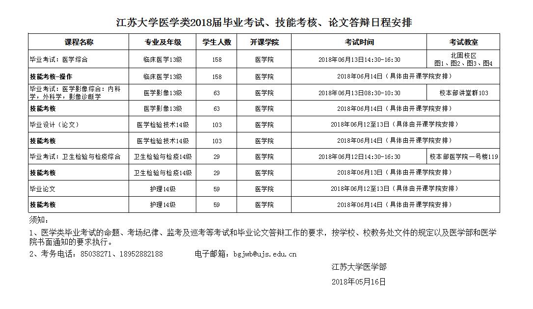 永利集团2018届医学类毕业考试、技能考核、论文答辩日程安排