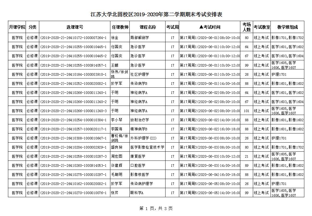 北固校区2019-2020学年第二学期期末考试安排
